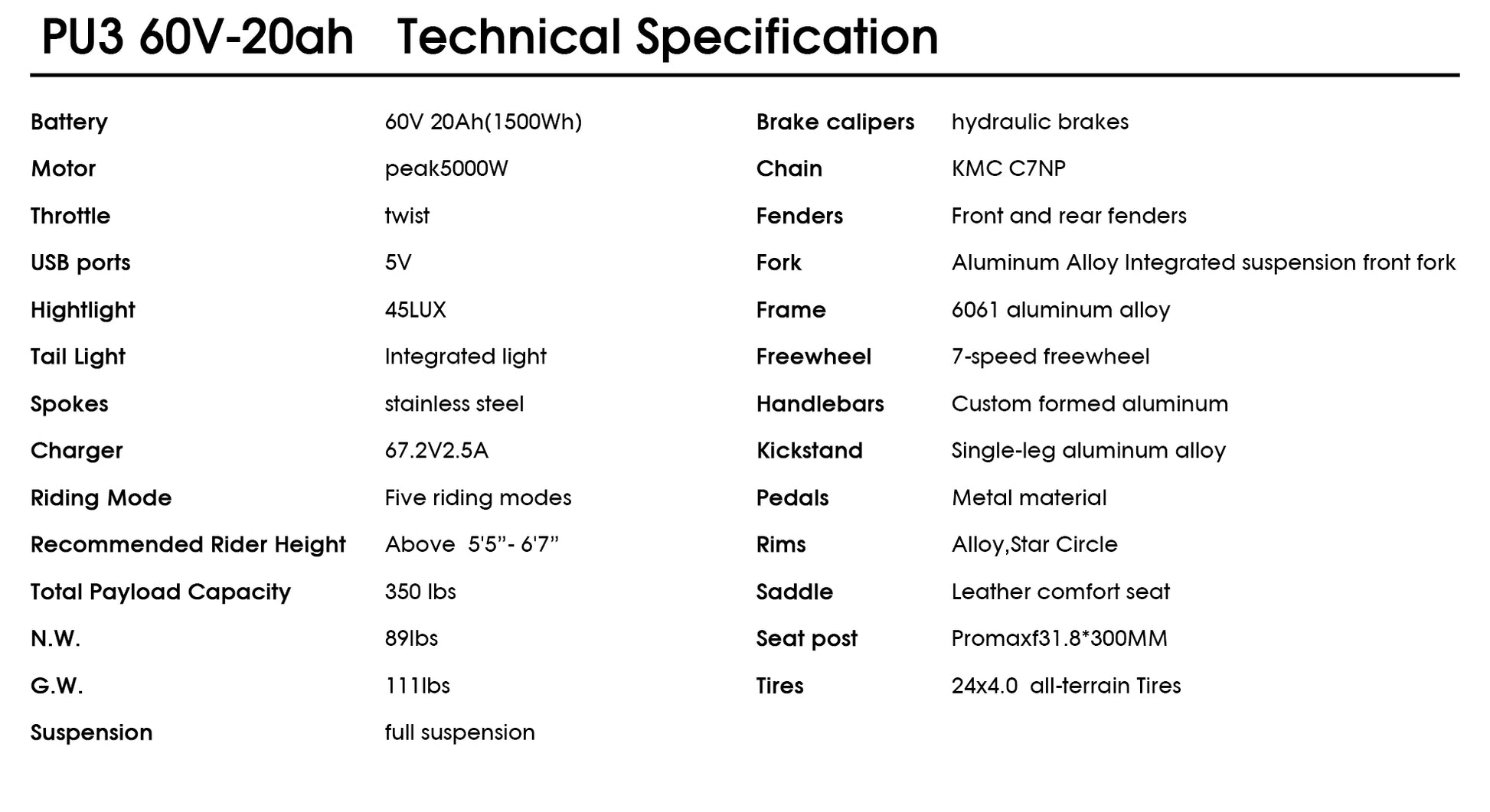 PUJH PU3-60V-24” Pro Long Range Fat Tire E-bike