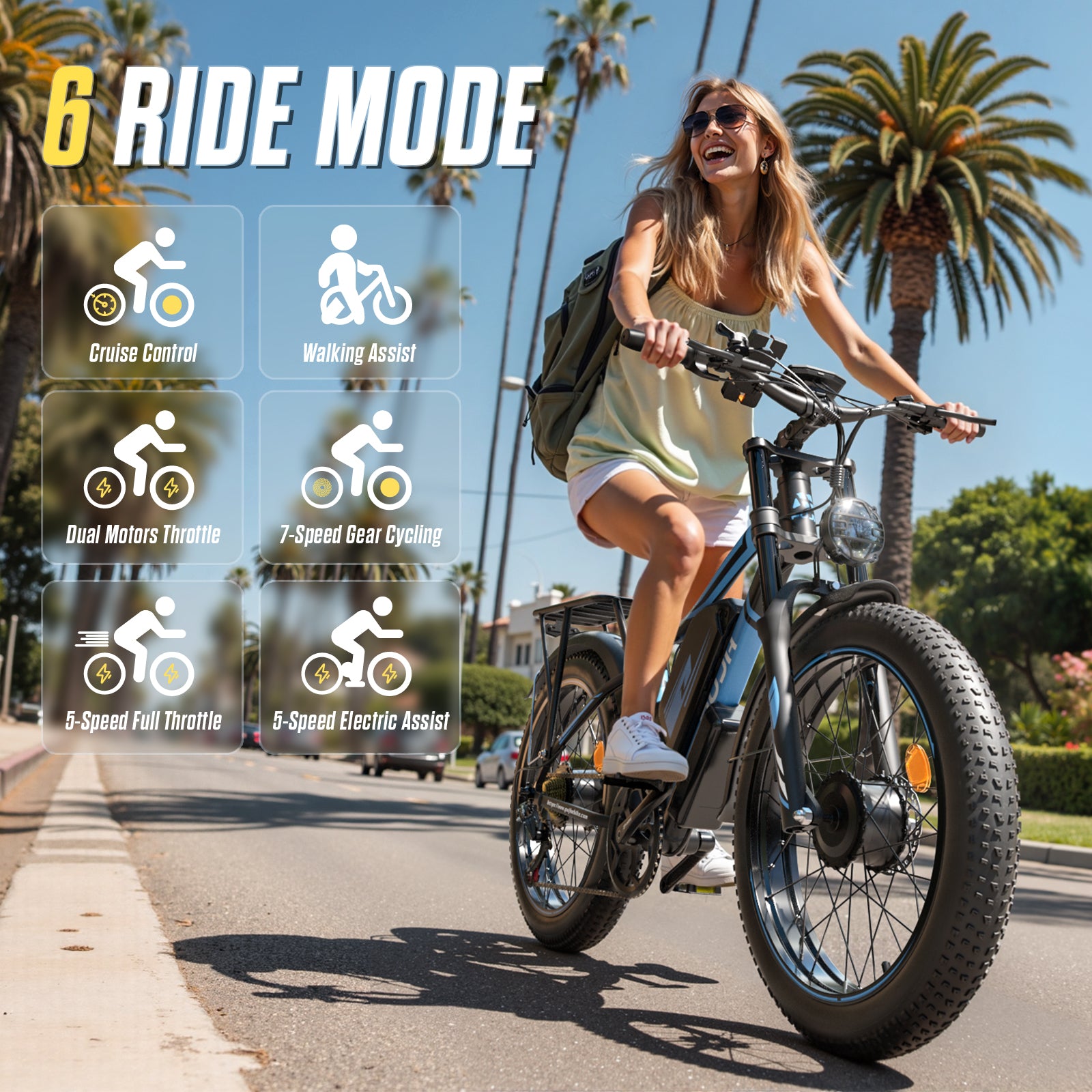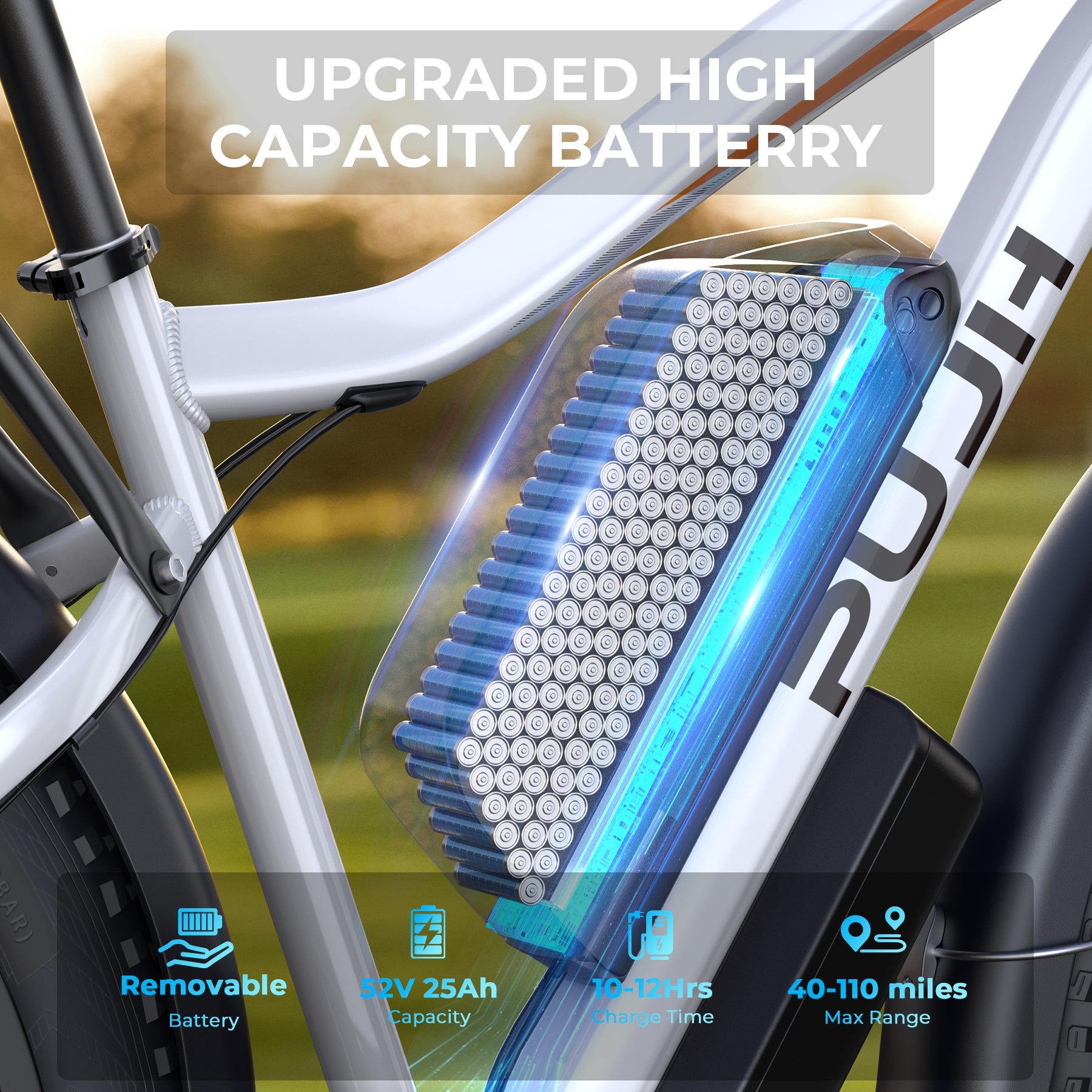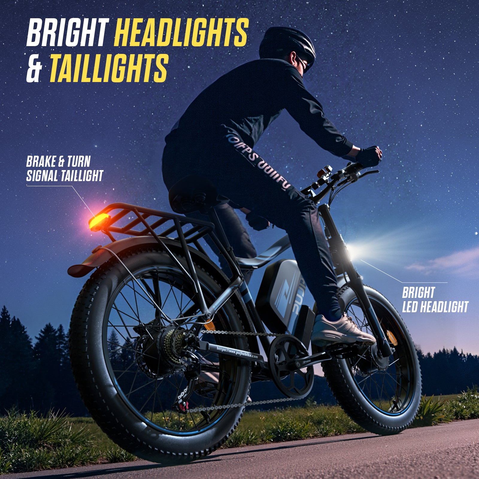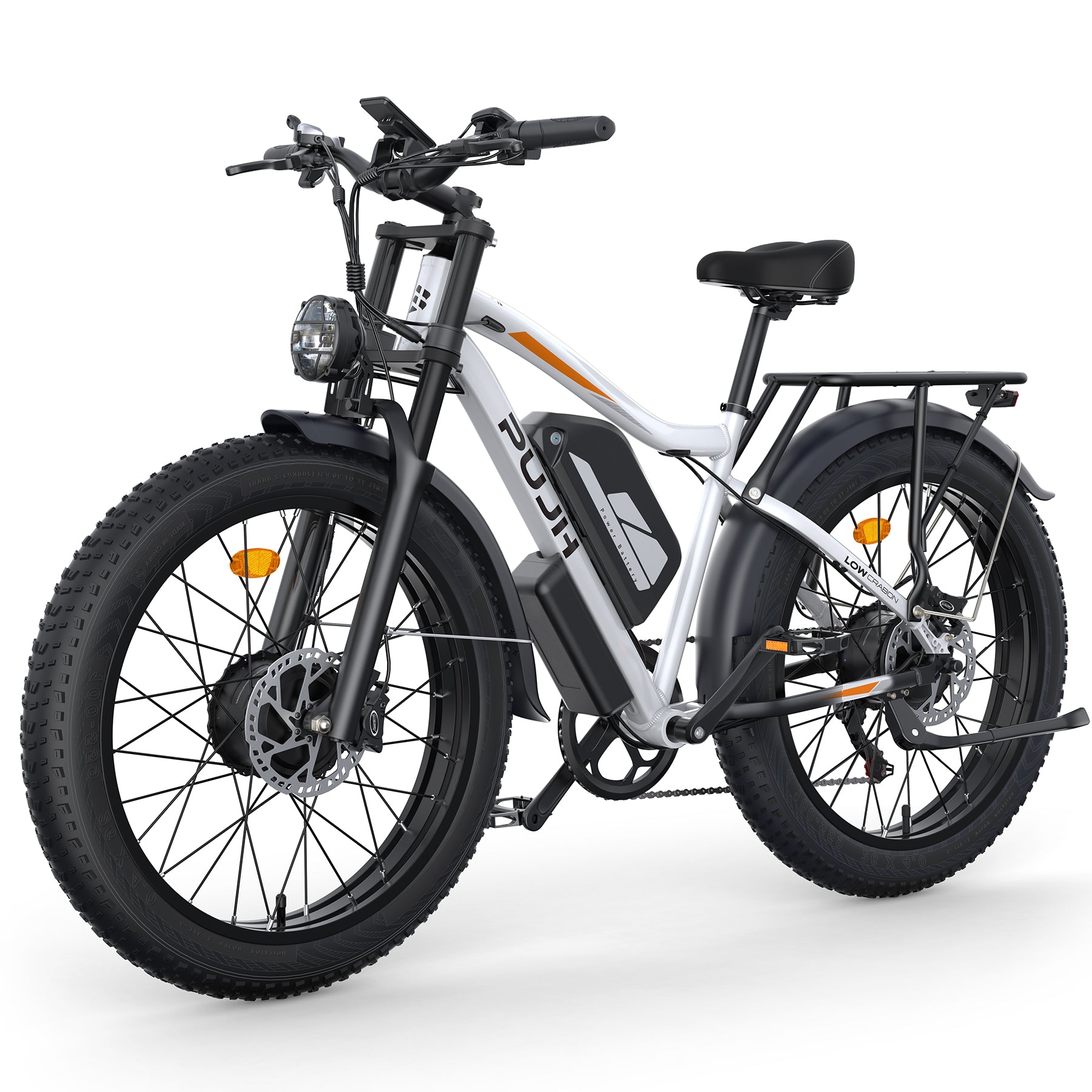 PUJH PU2-52V25AH- Full Suspension Fat Tire E-bike, 55 mph top speed, 100 mile range, 3000 Wh, 38 kg, 26 in - Black.